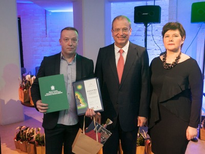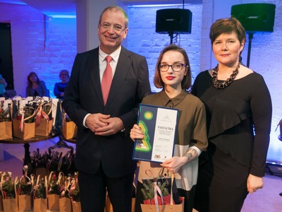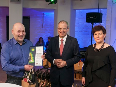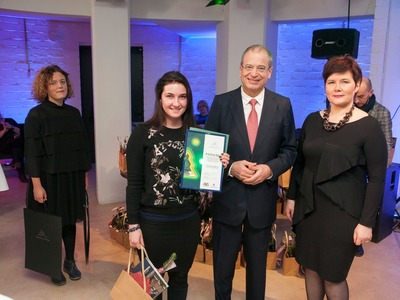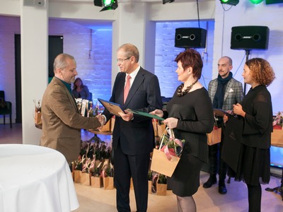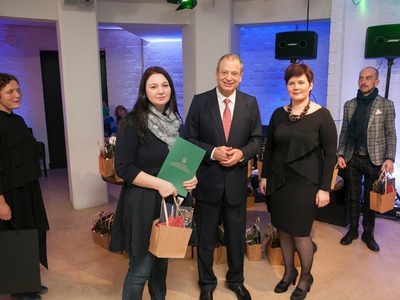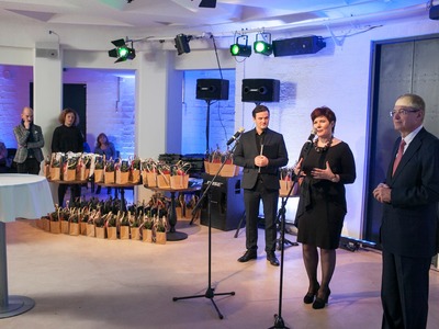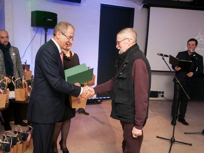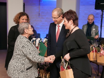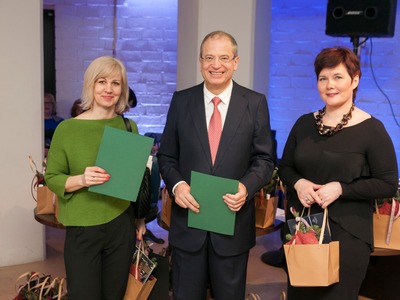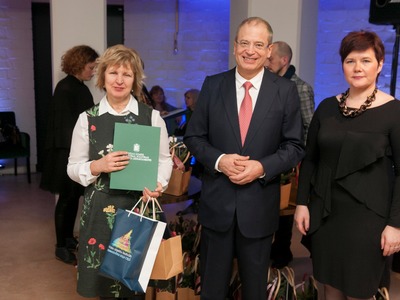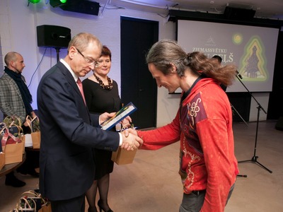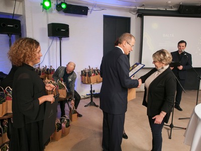 Balvas pasniedza Rīgas domes vicemērs Andris Ameriks un Izglītības, kultūras un sporta departamenta Kultūras pārvaldes priekšniece Baiba Šmite.