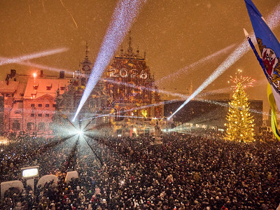 Galvaspilsētas iedzīvotāji un viesi sagaidījuši 2026. gadu līksmās svinībās Vecrīgas laukumos: Rātslaukumā, Līvu laukumā, Pils laukumā, laukumā pie Pulvertorņa, 11. novembra krastmalas paralēlajā ielā starp Poļu un Bīskapa gāti, kā arī Kaļķu ielas posmā starp Vaļņu ielu un Aspazijas bulvāri.