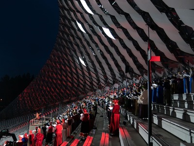 Jau no agra 14. augusta rīta Mežaparkā norisinājās sagatavošanās darbi un mēģinājums koncertam “BrāliBrāli”, kas vienlaikus bija arī sākumpunkts jeb pirmie kadri filmai “Daiļuma dārzs” par brāļiem Kokariem. Svētku vakaru Mežaparkā ievadīja Kokaru mākslas telpas un mākslinieces Olgas Šilovas veidotā Imanta un Gido Kokaru bareljefa atklāšana.