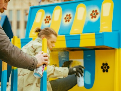 Sadarbībā ar Latvijas Mākslas akadēmiju mākslinieki Mārtiņš Aizpurvs un Mārtiņš Dziļums tās apzīmēja, iekļaujot Ukrainas karoga krāsas, lai klavieres būtu ne tikai skanīgs, bet arī vizuāls apliecinājums Ukrainas atbalstam, kļūstot par mākslas objektu, kas pats par sevi ir kā protests pret Krievijas agresiju Ukrainā.