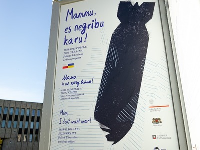 Iepretim Krievijas vēstniecībai Rīgā skatāma Polijas-Ukrainas arhīvu projekta izstāde “Mammu, es negribu karu!”. Zīmējumos, kas papildināti ar citātiem, atspoguļota bērnu emociju dažādība – no bailēm un izmisuma līdz cerībai un ticībai uzvarai.