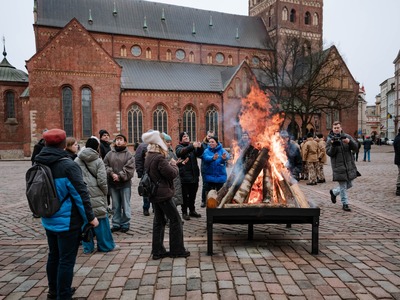 Doma laukumā barikāžu aizstāvju atceres dienai veltītu uzrunu teica Latvijas Valsts prezidents Edgars Rinkēvičs, kurš aizdedzināja piemiņas ugunskuru, kas jaunsargu uzraudzībā dega visas dienas garumā līdz plkst. 21.00. Doma laukumā bija apskatāma arī izstāde “Plakāts 1991. gada barikādēs”, muzeobusa ekspozīcija “Ikaruss”, 12 unikāli mākslas darbi, kas izgatavoti no maskēšanās tīkliem. Vakarā visi bija aicināti uz sadziedāšanos pie ugunskura, kas kļuvusi par patriotisku tradīciju.