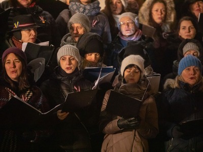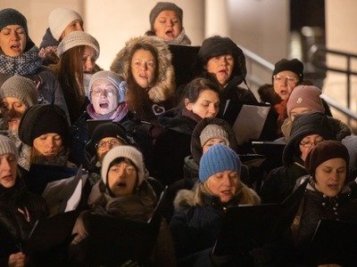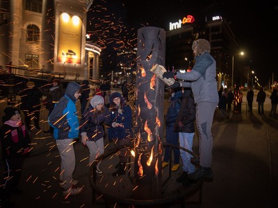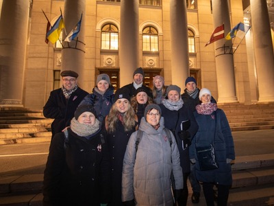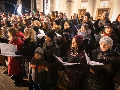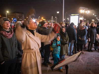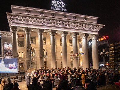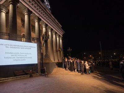 Latvijas Republikas proklamēšanas 104. gadadienas svinētājus laukumā pie VEF Kultūras pils priecēja dzīvā uguns, translācija no pasākuma Brīvības laukumā, Latvijas valsts himnas kopīga dziedāšana, sadziedāšanās ar Rīgas koriem un iespēja baudīt siltu tēju un kafiju Latvijā labi zināmu radio ētera personību un mūziķu sabiedrībā.