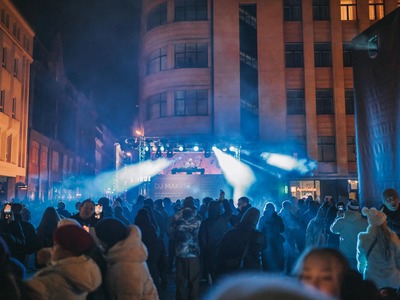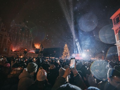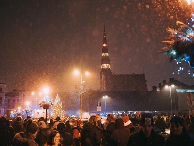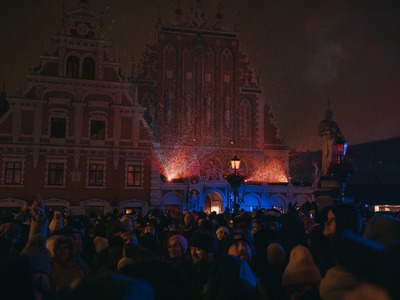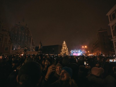 Jauno, 2025. gadu, rīdzinieki un pilsētas viesi šogad sagaidīja vairākos Vecrīgas laukumos – Rātslaukumā, Līvu laukumā, Doma laukumā, Pils laukumā, laukumā pie Pulvertorņa, 11. novembra krastmalas paralēlajā ielā starp Poļu un Bīskapa gāti un Kaļķu ielas posmā starp Vaļņu ielu un Aspazijas bulvāri, kur jautrā atmosfērā varēja izdejoties, izdziedāties un līksmi sagaidīt Jauno gadu.