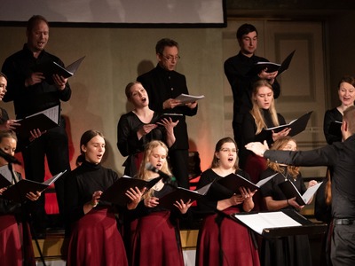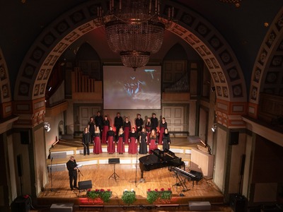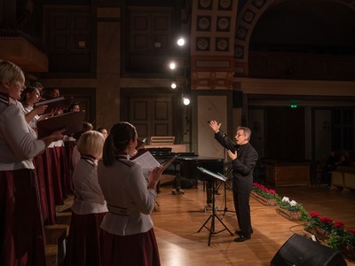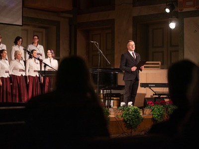 Koncertzālē “Ave Sol”, Citadeles ielā 7, uzstājās ērģelniece Larisa Carjkova un mecosoprāns Baiba Renerte, Latvijas Republikas Zemessardzes koris “Stars” un Rīgas Latviešu biedrības kamerkoris “Austrums” diriģenta Ārija Šķepasta vadībā. Pasākumu noslēdza mūziķis Atis Zviedris. Svētku pasākumu vadīs aktieris Kārlis Anitens.