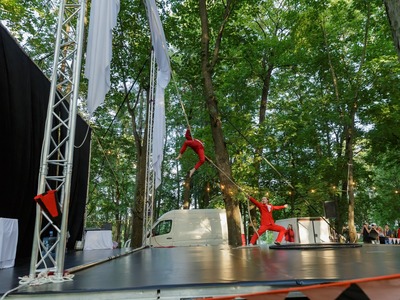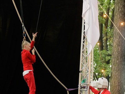 Festivāla vakara programmā bija vēlreiz skatāmas Big Wolf Company un Dmitrija Pudova izrādes, kā arī uzstājās lietuviešu akrobāts Džiugas Kunsmanas ar izrādi “MOOD” un latviešu Sīra rata mākslinieks Aleksejs Smolovs ar viņa vadībā veidotu site-specific izrādi. Vietai pielāgotā izrāde ir festivāla “Re Rīga!” norises vietas (Zeļļu ielas 25 apkārtesošā parka, ēku un Āgenskalna) un vēstures iedvesmots priekšnesums ar nosaukumu “Pavediens”. Tajā piedalījās igauņu akrobātes Lizete Volka (Lizeth Wolk) un Anna Kreizī (Anna Crazy), kā arī lietuviešu gaisa akrobāts Konstantīns Kosovecs (Konstantin Kosovec). Priekšnesums, kurā bija iekļauti mākslinieku pārstāvēto cirka žanru - gaisa akrobātikas, laikmetīgās dejas un lokanības - elementi, noslēdza festivālu.