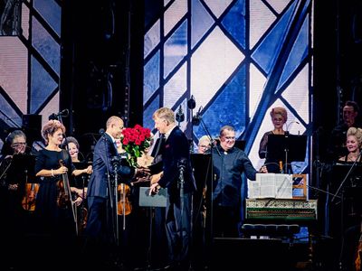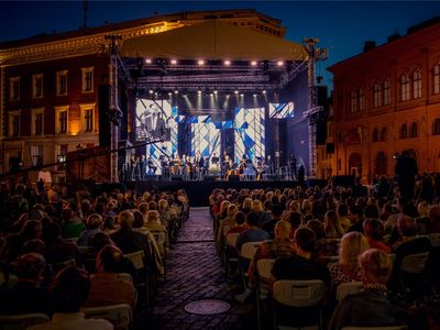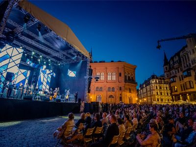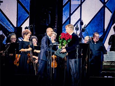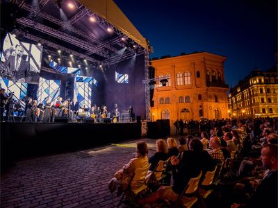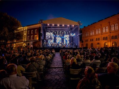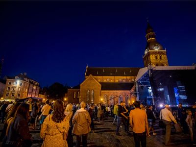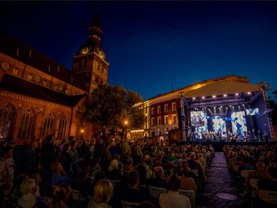 Latvijas Mūzikas akadēmijas (JVLMA) 100. jubilejas sezonas ieskaņas koncerts "Pāri" Doma laukumā bija arī Rīgas svētku pirmās dienas ieskaņas koncerts 16. augustā. Uz skatuve uzstājās divi stilistiski atšķirīgi un spilgti kolektīvi - JVLMA Baroka orķestris un Rīgas Doma kora skolas bigbends. Kopā ar Baroka orķestri uzstājās Elīna Šimkus, Ilze Grēvele-Skaraine, Terēze Gretere, Monta Martinsone, Rinalds Kandalincevs, Maija Kļaviņa, Kristīne Stumbure un Mauro Pinčaroli. Savukārt bigbendam uz skatuves pievienojās solisti – instrumentālisti Kārlis Vanags, Indriķis Veitners, Madars Kalniņš, Dominiks Višņausks, Nefs Irizarī, Pēteris Liepiņš, Artis Orubs un dziedātāja Evilena Protektore.
