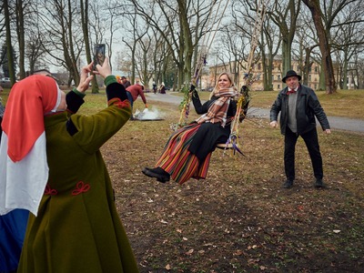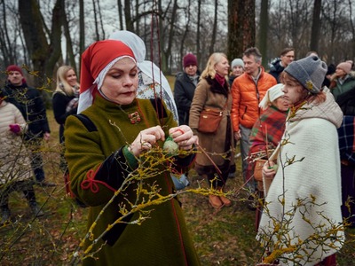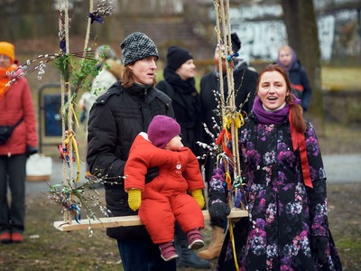 Pirmdien, 20. martā, no plkst. 6.00 rītā Rīgā folkloras kopu pavadībā notika vairāki Lielās dienas sagaidīšanas rituāli. Šogad kopā sagaidīt sauli Arkādijas parkā varēja ar Latvijas Folkloras biedrību.