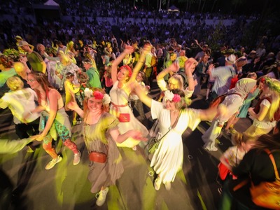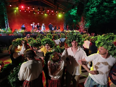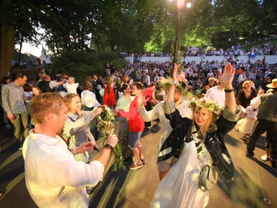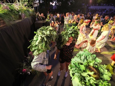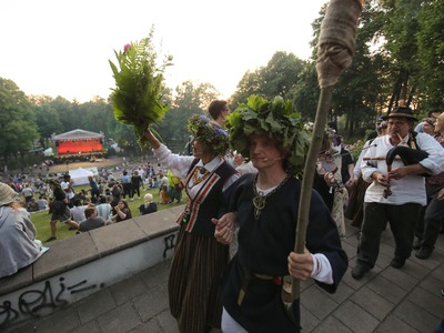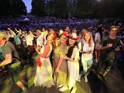 Jāņi atgriezušies pilsētvidē! Ar krāšņām svinībām, dančiem un tumsas kliedēšanu šogad rīdzinieki un pilsētas viesi svētkus atzīmējuši "Dzegužkalna tradicionālajās Jāņu" svinībās un svētku pasākumā Mežaparka Zaļājā teātrī.