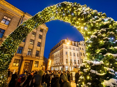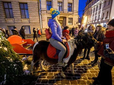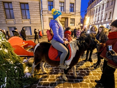 Svētdien, 1. decembrī, Pirmajā adventē, plkst. 17.00 Doma laukumā tika iedegta svētku egle. Klātesošos ar muzikālu iestudējumu „Rūķu sētas stāsts” priecēja VEF Kultūras pils bērnu vokālais ansamblis „Momo” un Jaunmārupes jauniešu jauktais koris „Universum”, pasākumu vadīja aktieris Kristians Kareļins.