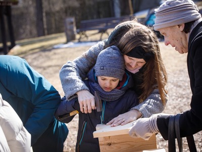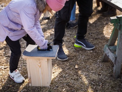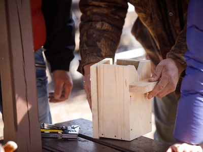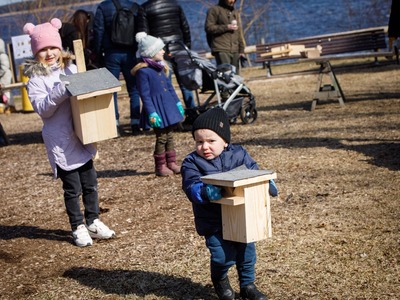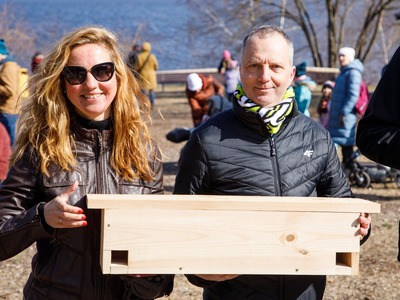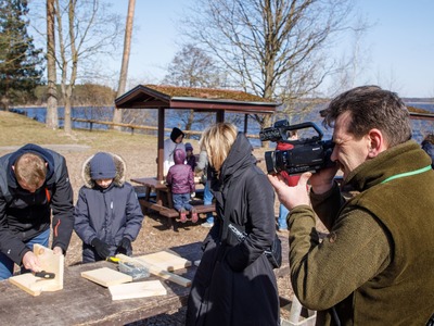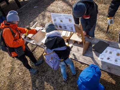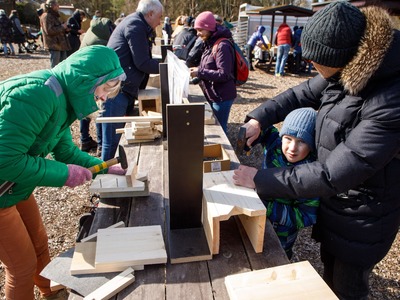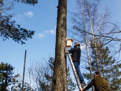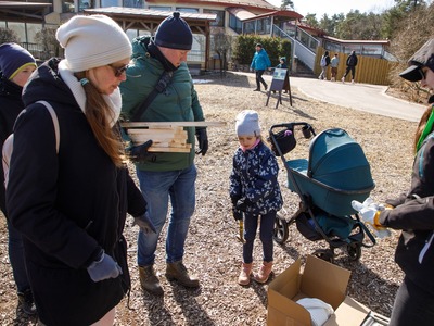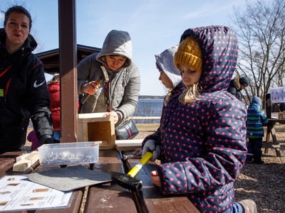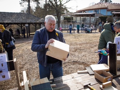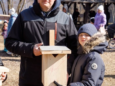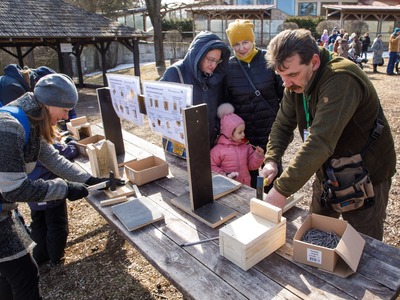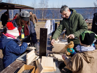 Rīgas Nacionālajā zooloģiskajā dārzā pasākuma dalībnieki iemācījās izgatavot mākslīgo ligzdvietu un vienlaikus ir pagatavoja īpašu paraugmājvietu svīrei – 2022. gada putnam Latvijā.