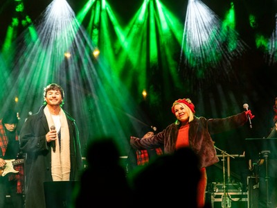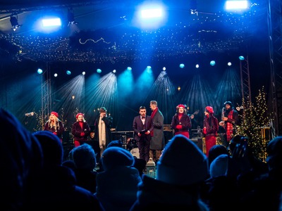 Par svētku noskaņu rūpējā Latvijā iemīļoti mākslinieki – dziedātāja Ieva Sutugova, dziedātājs Justs, kā arī mūziķis un dziedātājs Dagnis Roziņš. Kopā ar viņiem uzstājās Pārdaugavas kultūras apvienības kultūras centra “Imanta” sieviešu vokālais ansamblis “Fortuna” un kultūras un tautas mākslas centra “Ritums” bērnu vokālais ansamblis “Knīpas un Knauķi”. Muzikālo pavadījumu nodrošināja Ulda Timmas vadītā grupa.