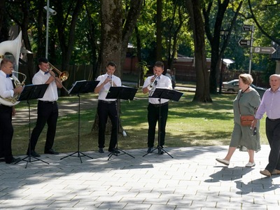 Pasākuma dalībniekus ar uzstāšanos pie Kultūras pils “Ziemeļblāzma” sagaidīja instrumentālais kvintets “Acumirklis”. Apsveikuma ceremoniju vadīja Mārtiņš Kanters, nodrošinot ne tikai pacilājošu un jautru atmosfēru kā pasākuma vadītājs, bet arī kopā ar mūziķu apvienību uzstājoties ceremonijas muzikālajās pauzēs (Mārtiņš Kanters – vokāls, ģitāra, Kristaps Krievkalns – klavieres, Edijs Šimiņš – sitaminstrumenti, Rolands Stepanovs – bass).