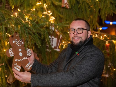 Savukārt Doma laukumā priecē egle “Kraukšķītis”, kuras noformējumu radījis SIA “First service” un mākslinieks Kristaps Štobis, vēl viena viņa veidotā egle “Konfektes” pēc 2. decembra rotāsies 11. novembra krastmalā.
