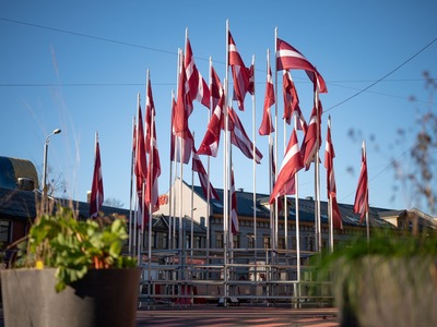 Pilsētvidē skatāms Latvijas Republikas proklamēšanas 103. gadadienai veltīts svētku noformējums – pie apgaismes stabiem, uz tiltiem un ceļu pārvadiem ir izvietotas vertikālas karoglentes, savukārt krustojumos – karogkonstrukcijas, kas kopumā atrodas vairāk nekā 100 adresēs. Ierasto svētku rotu vēl papildina vides stendi un plakāti ar laikmetīgās mākslas darbu un pašvaldības vēlējumu svētkos, kā arī latviešu tautasdziesmu spēka vārdu gaismas objekti.