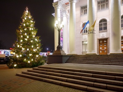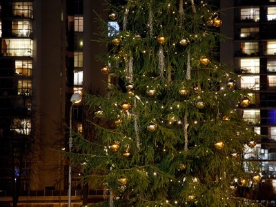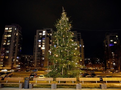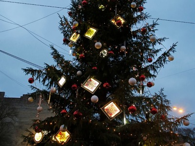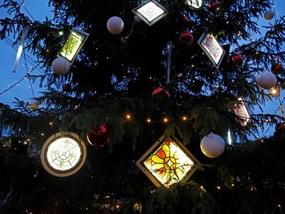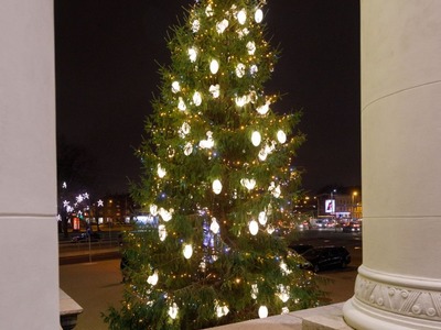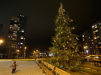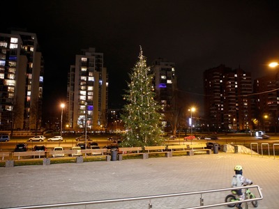 Attēlos redzamas egles svētku rotā pie VEF Kultūras pils ("Rīgas gailis"), Rīgas Kultūras un atpūtas centra "Imanta" ("Zeltīte") un Rīgas Vidzemes priekšpilsētas izpilddirekcijas ("Ziemassvētku egle") ēkām. “Vitrāžu egle” uzstādīta Ludzas, Katoļu un F. Sadovņikova ielas krustojumā, egle “Konfekte” 11. novembra krastmalā.