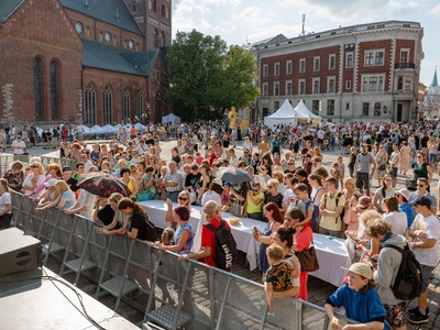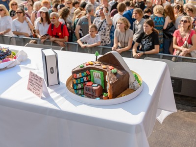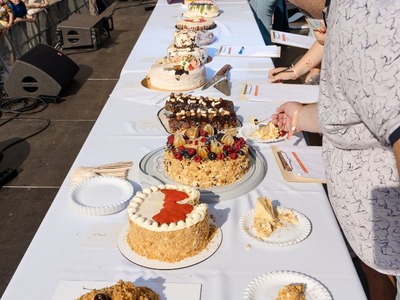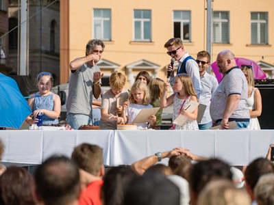 Rīgas drosmes un prieka vasaras svinībās Doma laukumā 19. augustā tika vērtētas kūku konkursam pieteiktās unikālā izpildījuma tortes.