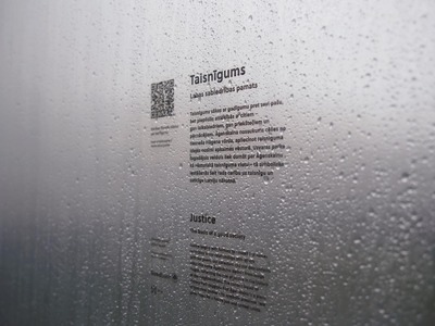 Ceturtdien, 14. novembrī, pie vides objekta “Taisnīgums” notika atklāšanas pasākums, kurā dāvinājums svinīgi tika nodots Rīgas domei. Tas novietots zīmīgā vietā - Uzvaras parkā, pie Aleksandra Grīna bulvāra un Bāriņu ielas krustojuma. Taisnīgums ir visplašāk par obligātu pieņemts tikums – gan sengrieķu, gan latīņu, gan daudzās mūsdienu valodās tas ir sinonīms tieslietām. Angļu valodā ar vārdu justice apzīmē tiesnesi. Arī Āgenskalna nosaukums cēlies no tiesneša Hāgena vārda, apliecinot taisnīguma idejas nozīmi apkaimes vēsturē.