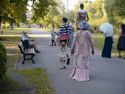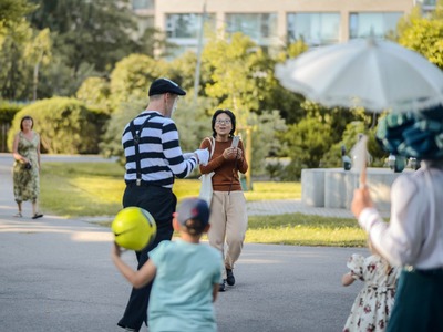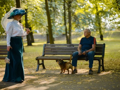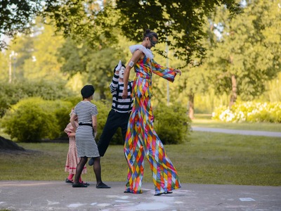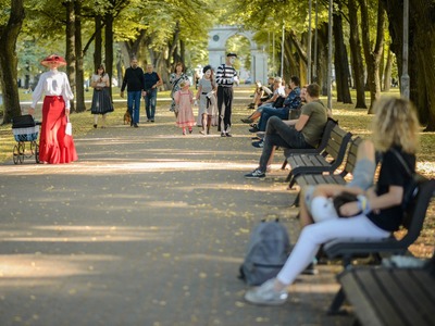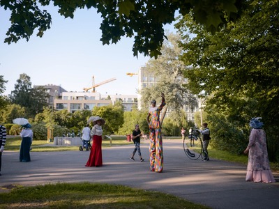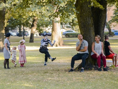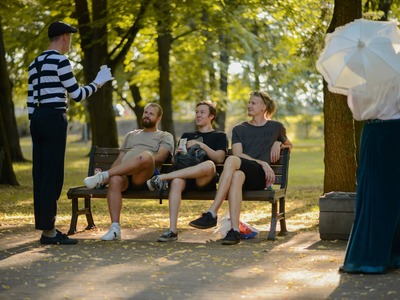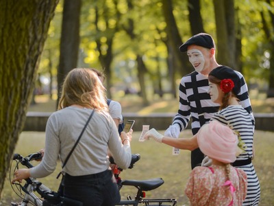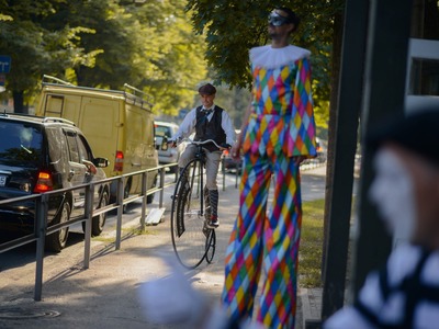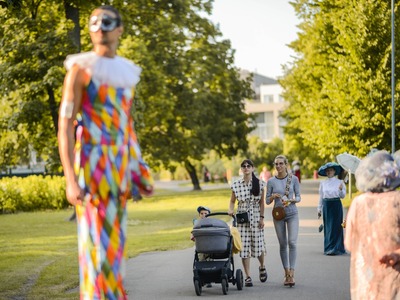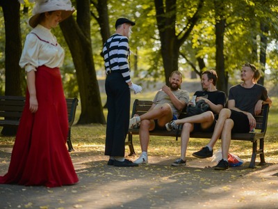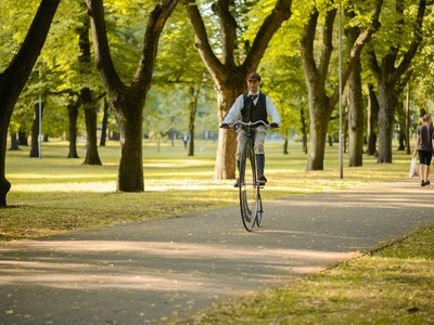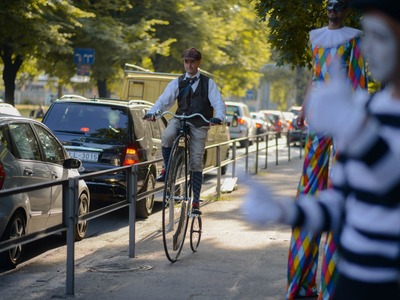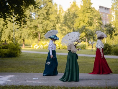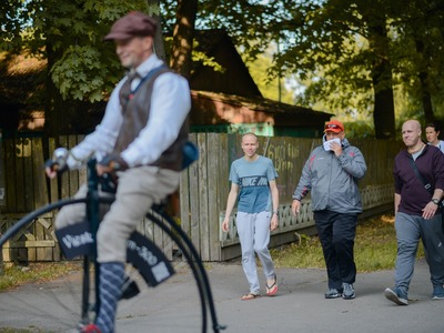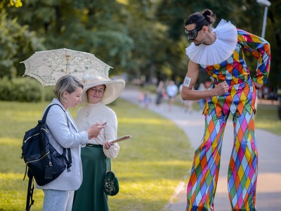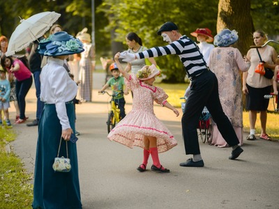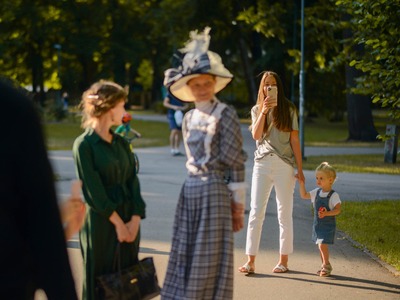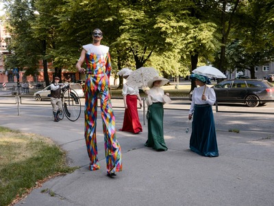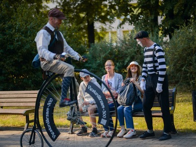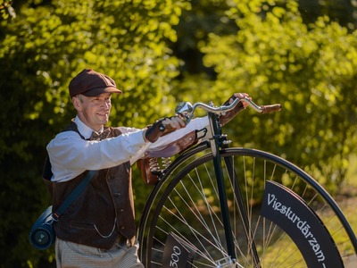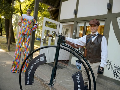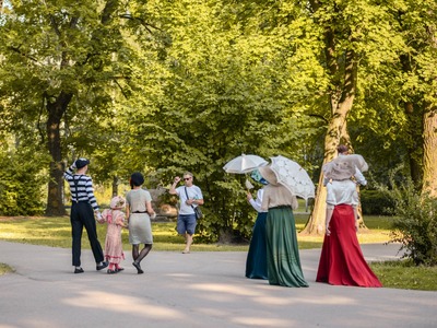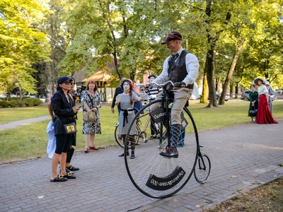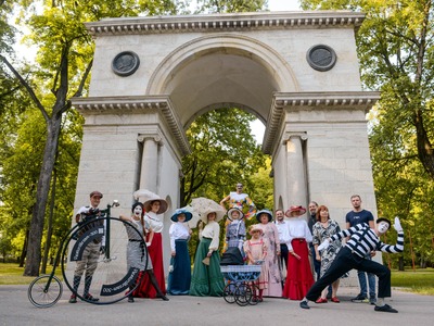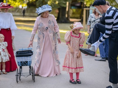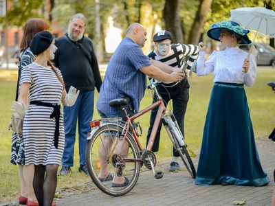 Kādā vasaras pēcpusdienā parka apaļā jubileja svinēta kopā ar burvīgām dāmām jūgendstila laika tērpos, garkājiem un mīmiem, kurus pavadīja unikālais augstrata velosipēds, atskaņojot audiogidu.