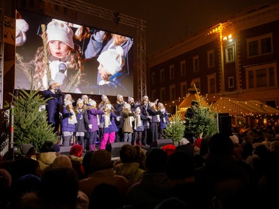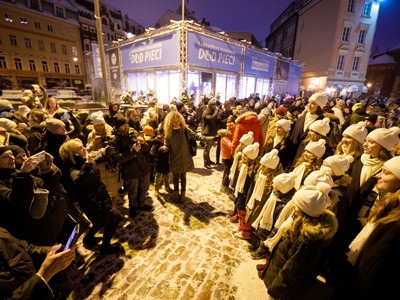 Ar virkni muzikālu pārsteigumu un pēc Rīgas mēra Mārtiņa Staķa aicinājuma palīgos Pirmajā adventē spožāko svētku eglīti Doma laukumā iededza bērnu un jauniešu vokālais ansamblis "Kolibri".