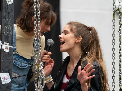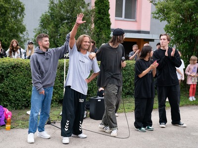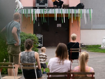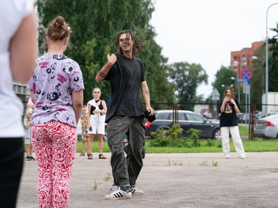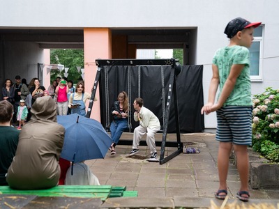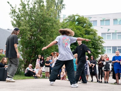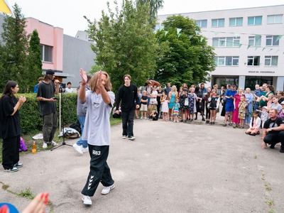 Skolas iekšpagalmā notika Rēzeknes teātra “Joriks” izrāde bērniem “Alvas zaldātiņš” un fonda “Initium” muzikālā izrāde jauniešiem “Starp/Brīdis”. Zaļajā zonā varēja vērot ielu vingrotāju paraugdemonstrējumus un iepazīties ar kapueiru – afrikāņu-brazīliešu dejas mākslas formu, kas apvieno cīņas mākslu, deju un akrobātiku. Kapueiras ritmus nomainīja hiphopa deju paraugdemonstrējumi, meistarklases un deju “cīņas”.