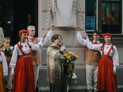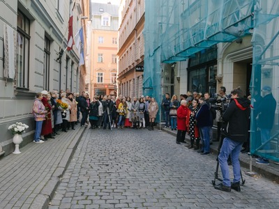 Plāksne tika uzstādīta pie Mazās ģildes ēkas Amatu ielā 3, kur horeogrāfe strādāja vairākus gadu desmitus, vadot deju kolektīvu “Dzintariņš”.