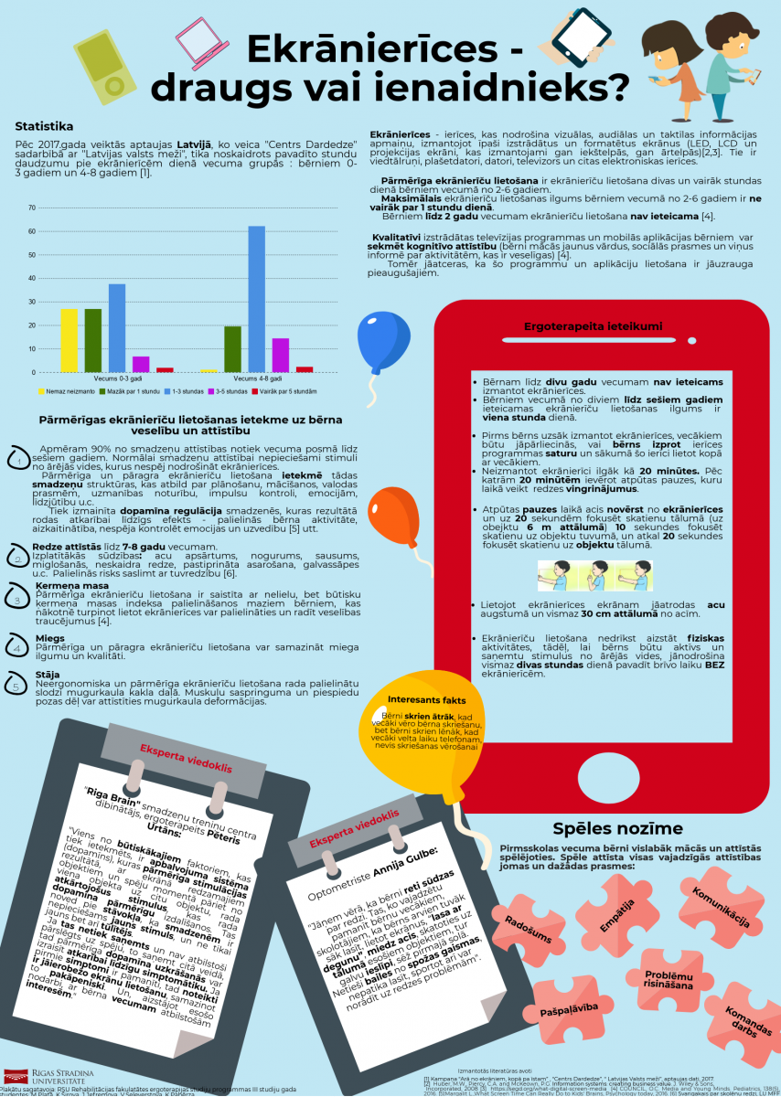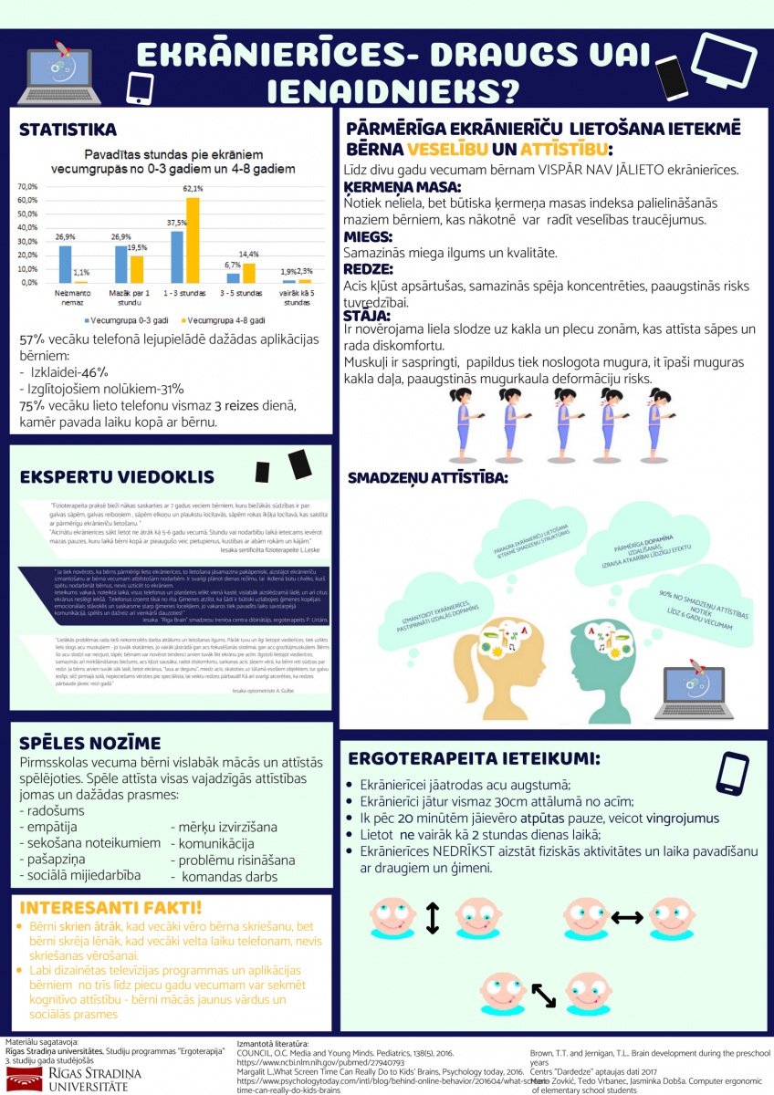 Mūsdienās arvien vairāk bērnu savu brīvo laiku pavada, lietojot dažādas ekrānierīces- spēlējot spēlītes telefonā vai planšetdatorā, vai skatoties multiplikācijas filmiņas portatīvajā datorā, bet kāda ir šo ierīču ietekme uz bērna veselību un attīstību?