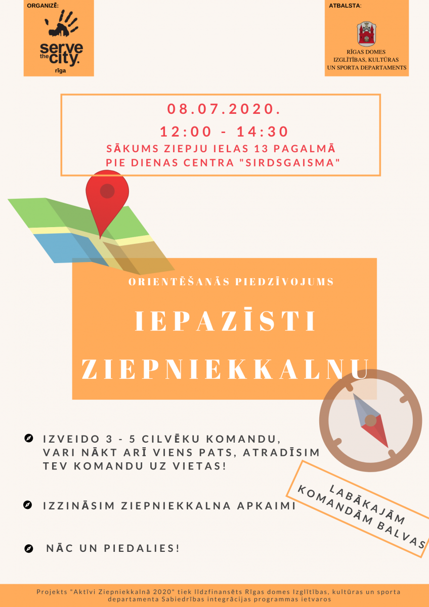 Pasākuma rīkotājs – biedrība “Serve the City”. Projekts “Aktīvi Ziepniekkalnā” tiek līdzfinansēts Rīgas domes Izglītības, kultūras un sporta departamenta Sabiedrības integrācijas programmas ietvaros.