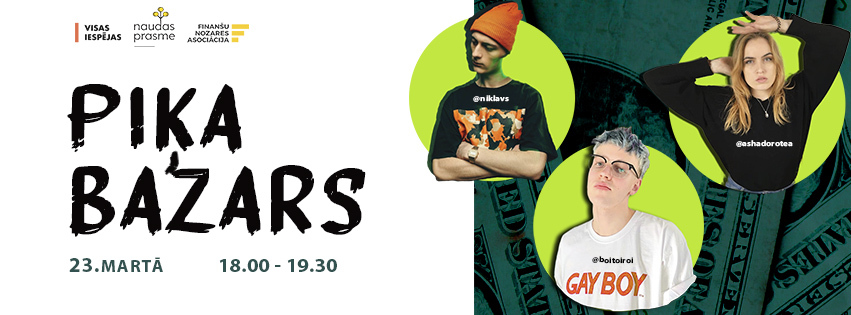 Diskusija tiek rīkota Finanšu pratības nedēļas ietvaros, kas šogad norisinās no 22. līdz 28. martam. Šīs nedēļas laikā dažādas institūcijas un uzņēmumi aicina ikvienu iedzīvotāju aktīvi izvērtēt savus finanšu paradumus, kā arī iesaistīties dažādās šā brīža situācijai atbilstošās aktivitātēs (vairāk informācijas meklē www.finansupratiba.lv). “Finanšu pratība ir viena no būtiskākajām 21. gadsimta kompetencēm, jo tā ietekmē ikviena cilvēka labklājību. Īpaši svarīgi šīs prasmes ir attīstīt jauniešos, palielinot viņu konkurētspēju un liekot pamatus drošākai nākotnei. Esmu pārliecināta, ka “Piķa Bazars” iezīmēs jaunu pieeju kā jauniešiem saprotamā formā skaidrot par uzkrājumu veidošanu un naudas ieguldīšanu drošā un ilgspējīgā veidā,” par finanšu pratības nepieciešamību stāsta Latvijas Finanšu nozares asociācijas Komunikācijas vadītāja Sabīne Spurķe.