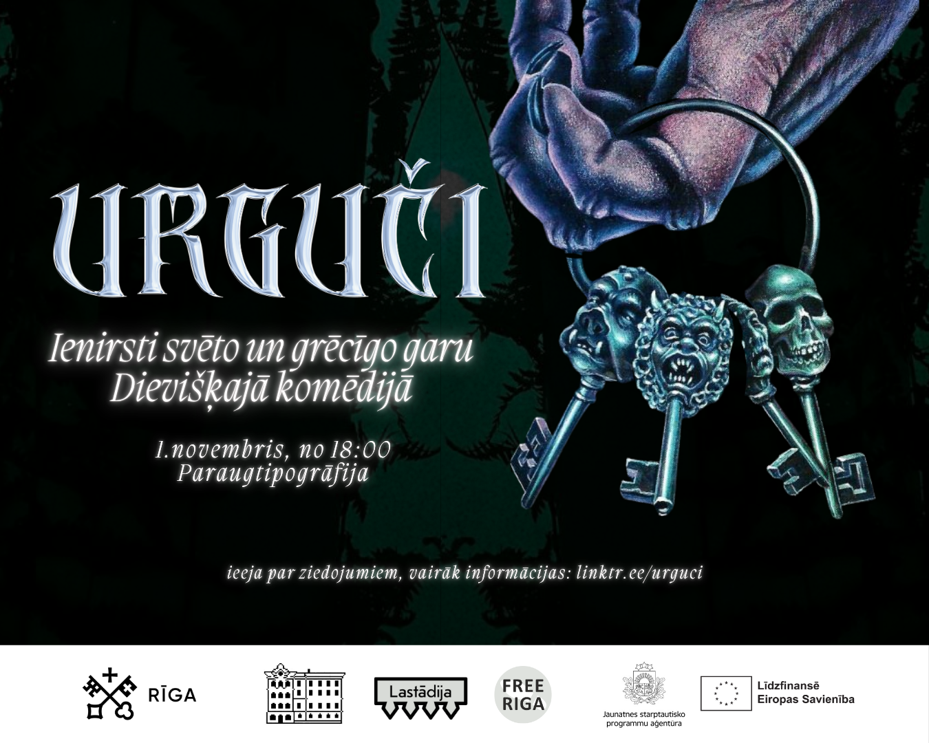 Veļu laiku godinot, 2025. gada 1.novembrī no plkst. 18.00 Paraugtipogrāfija un Lastādijas kvartāls aicina uz Urguču svinībām Dantes “Dievišķās komēdijas” noskaņās Kārļa Mīlenbaha ielā 12, Rīgā.
