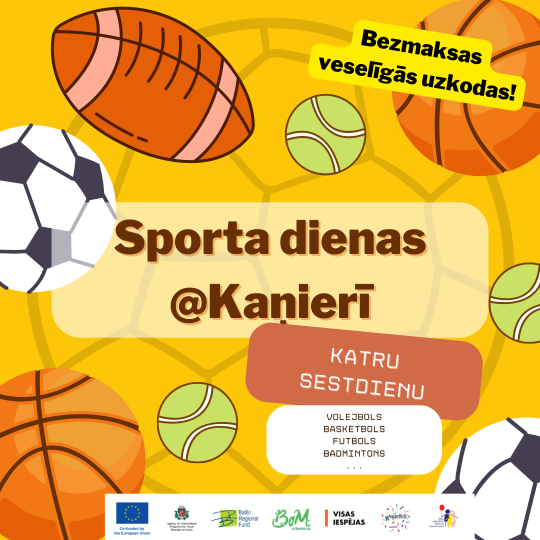 Katru sestdienu, sākot no 2023. gada 1. aprīļa, no plkst. 13.00 līdz 15.00 Jauniešu centra "Kaņieris" sporta zālē, Kaņiera iela 15, jaunieši aicināti izkustēties un saturīgi pavadīt brīvo laiku.