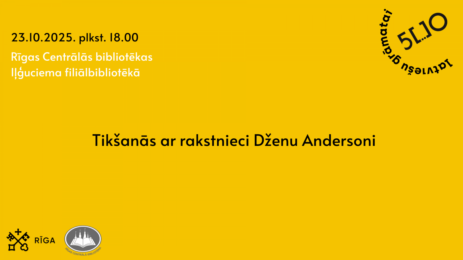 23. oktobrī plkst. 18.00 Rīgas Centrālās bibliotēkas Iļģuciema filiālbibliotēkā (Lidoņu iela 27 k-2) notiks tikšanās ar lasītāju iemīļotu autori Dženu Andersoni.