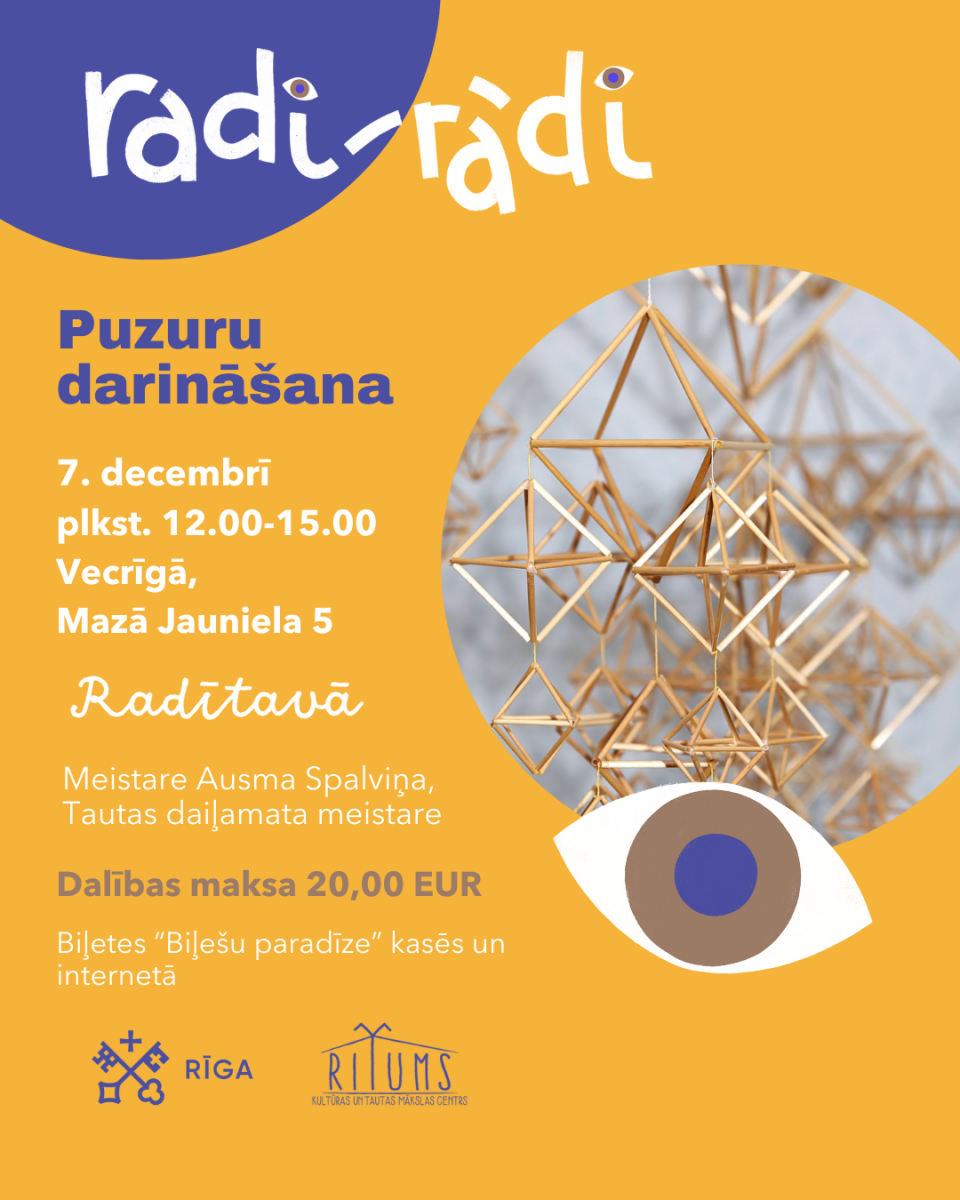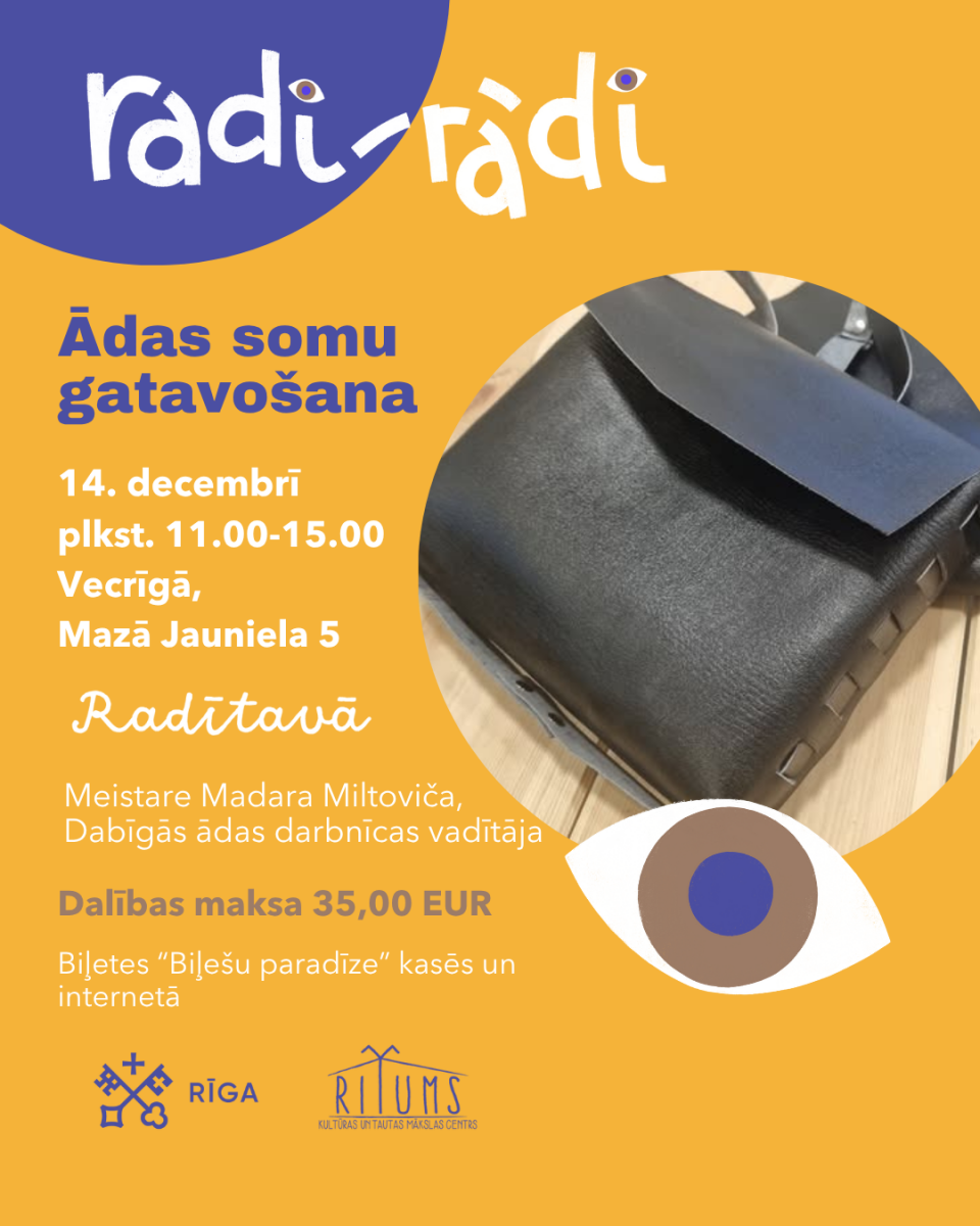 Noslēdzot 2025. gada sezonu, Kultūras un tautas mākslas centrā “Ritums” amatu prasmju cikla “Radi-rādi” ietvaros vēl notiks divas jaunas darbnīcas. Darbnīcas notiks Kultūras centra radošajā telpā “Radītava” ar ieeju no Mazās Jaunielas 5, Vecrīgā.